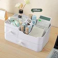 Generic - منظم مكياج صغير مع درج للتخزين – تصميم أنيق لتنظيم أدوات التجميل والإكسسوارات – متوفر باللون الأبيض والوردي (ابيض)