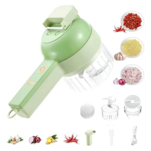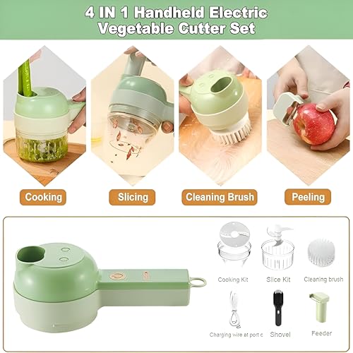 - تُحدث هذه القطاعة الكهربائية المحمولة 4 في 1 ثورة في روتين مطبخك من خلال الجمع بين التقطيع والتقطيع والتقشير والتنظيف في جهاز واحد صغير. توفر قدرتها متعددة الوظائف الوقت والمساحة مع ضمان إعداد دقيق وبدون مجهود للوجبات اليومية.