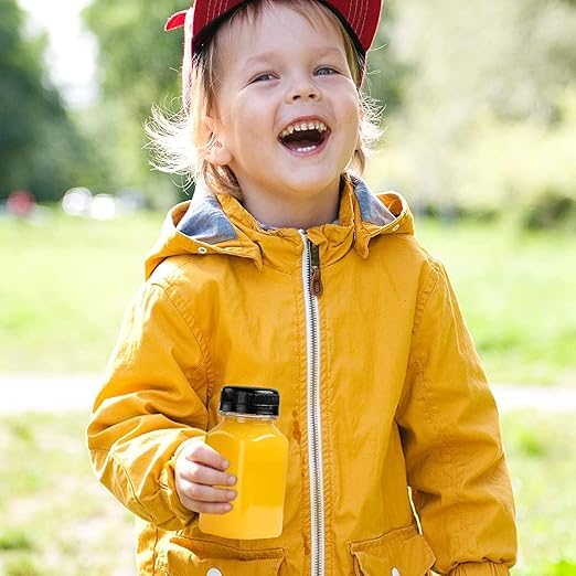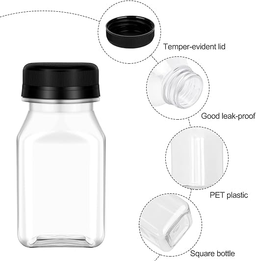 Generic - زجاجة شفافة صغيرة فارغة من البلاستيك قابلة لإعادة الاستخدام مع غطاء للعصير والسموزي، قطعة واحدة