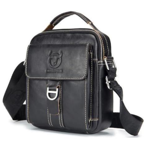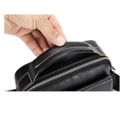 Generic - شنطة كتف صغيرة للرجال، شنطة كتف جلدية من الجلد الطبيعي، شنطة كروس خفيفة الوزن للاستخدام اليومي والعمل والرياضة والمشي لمسافات طويلة والسفر، لون اسود