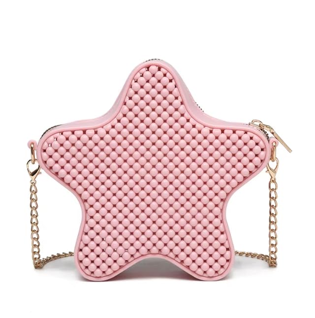 BEBO - حقيبة كروس بودي صغيرة بشكل نجمة، محفظة عملات معدنية بتصميم مجوف من PVC، حقيبة بسلسلة ذهبية للفتيات، لون أسود