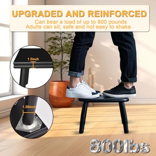 COROTC - مقعد صغير من الخشب شديد المتانة مقاس (34.3 × 22.4 × 21.8 سم) يمكنك تركيبه بنفسك، مقعد حمام متعدد الأغراض للأسرة العالية للبالغين (أسود)