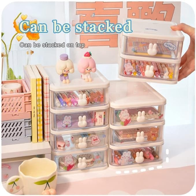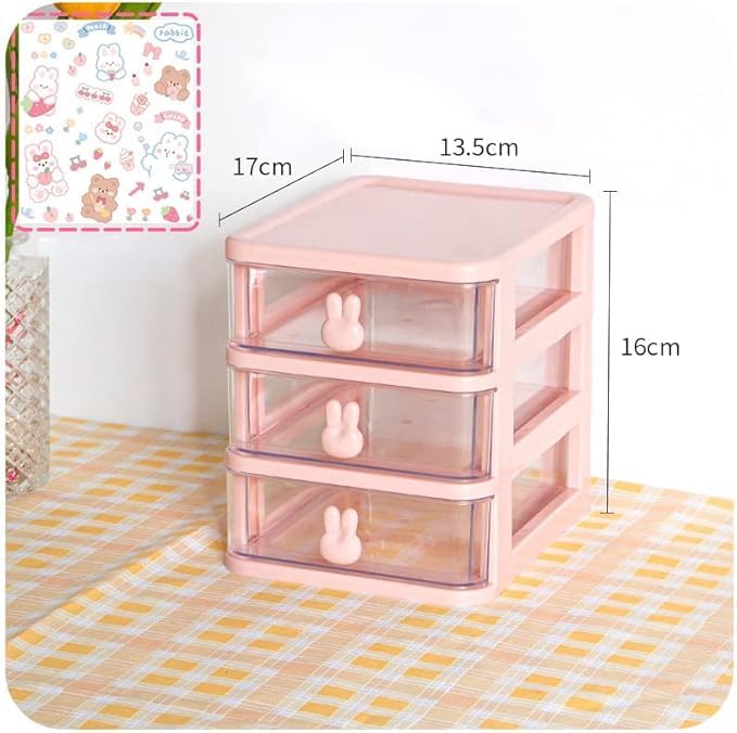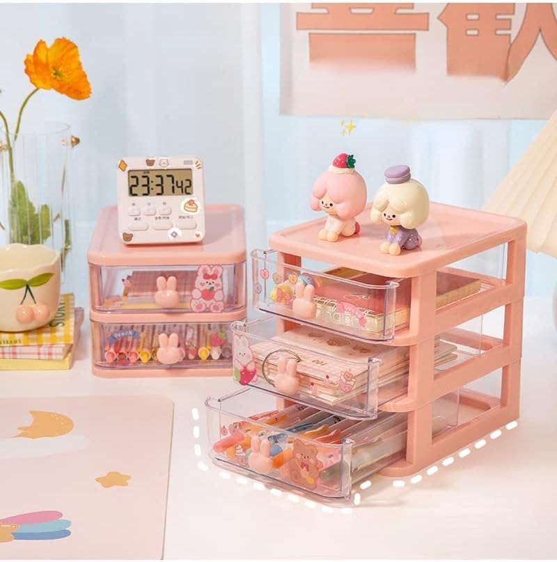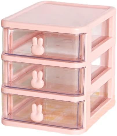 Generic - صندوق تخزين صغير - منظم مكتب صغير للغاية بثلاثة أدراج، صينية مكياج ومجوهرات شفافة مع مساحة للمستلزمات المكتبية ومستلزمات الأعمال الحرفية مع لمسة نهائية وردية ناعمة