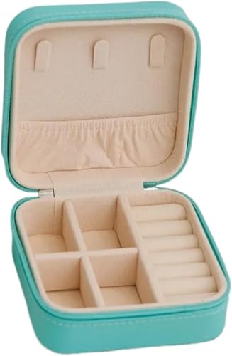 Generic - حافظة مجوهرات جلدية صغيرة للسفر، منظم مجوهرات محمول بتقسيمات داخلية مبطنة، صندوق تخزين أنيق للخواتم والأقراط والقلائد، تصميم فاخر ومثالي للهدايا للبنات والنساء