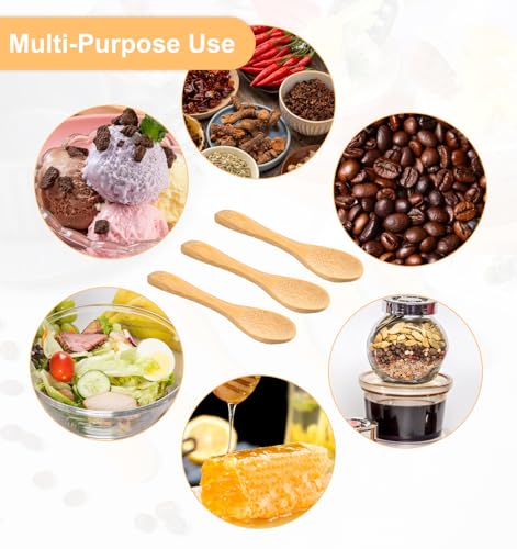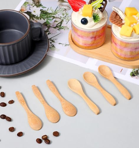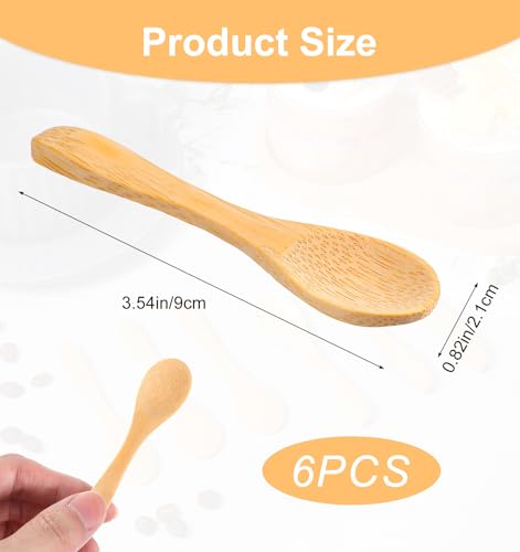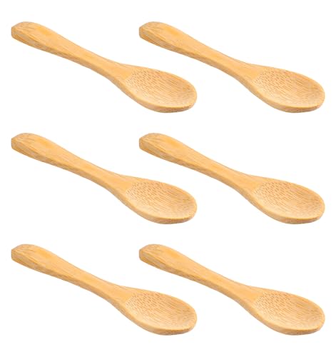 ValueBargain - ملعقة خشبية صغيرة، 6 قطع 3.5 انش، ملاعق صغيرة صغيرة من الخيزران للبرطمانات والسكر والقهوة والمبيض والعسل والتوابل، لوازم المطبخ