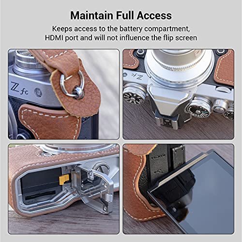 - الحفاظ على الوصول الكامل: تحافظ حافظة زد اف سي الجلدية النصفية على الوصول إلى حجرة البطارية وفتحة البطاقة ولن تؤثر على شاشة القلب. تتميز اللوحة السفلية بخيط 1/4 انش - 20 لحامل ثلاثي القوائم أو ملحقات أخرى