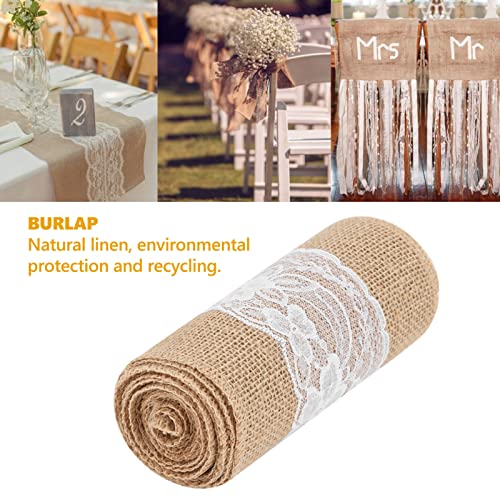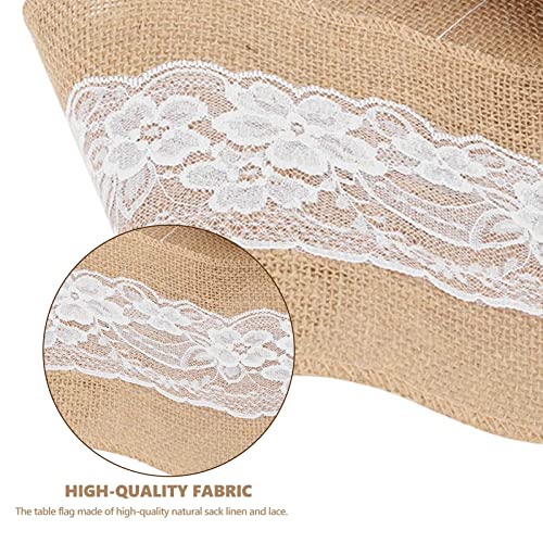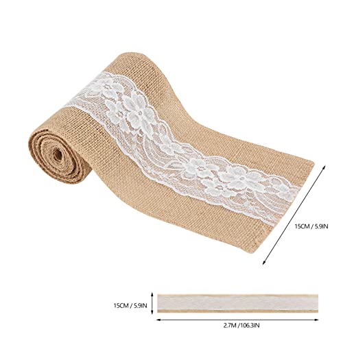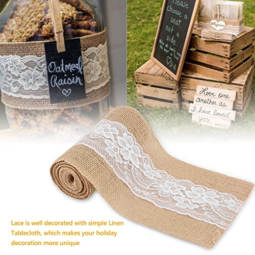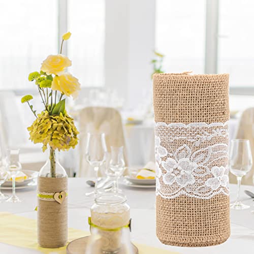 Smandy - مفرش ترابيزة من قماش سماندي قياس 15 × 270 سم من قماش الجوت وتصميم عتيق فينتيدج مع دانتيل لترابيزات الزفاف والديكور الذي تصنعه بنفسك