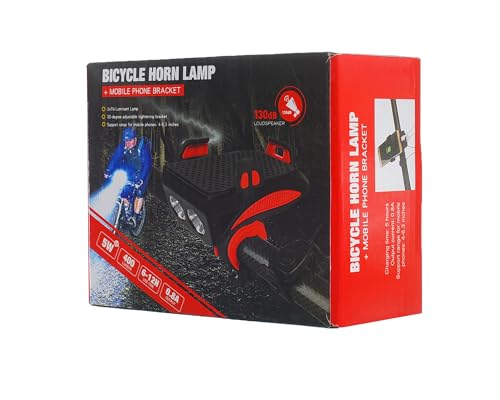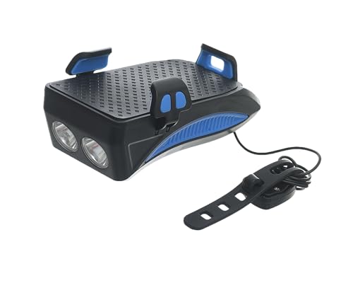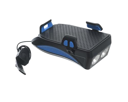 Smart Auto - حامل موبايل للدراجة يتضمن منفذ USB ومقبس شحن عادي ونوع سي بكشاف يدوي بـ 3 مستويات إضاءة وزمارة عالية ومميزة يشحن لمدة تصل إلى خمس ساعات من سمارت اوتو، أزرق