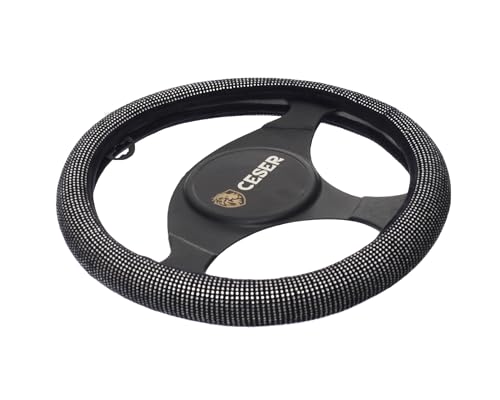 Smart Auto - غطاء طارة دركسيون قطيفة مرصع بحبيبات استراس من سمارت اوتو، مصنوع من مادة رائعة، مصنوع من السيليكون المغطى بالقطيفة بلون فضي