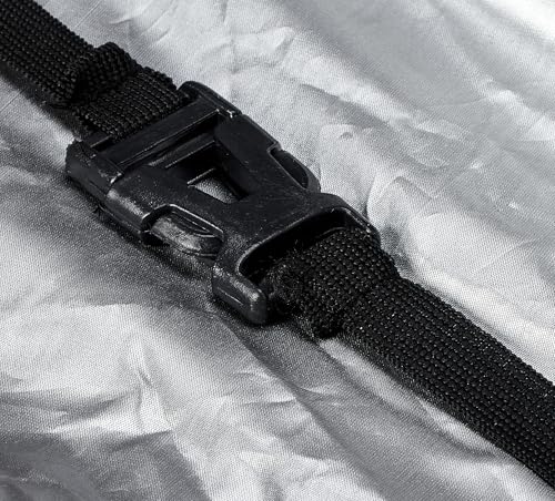 - ملاءمة آمنة وقابلة للتعديل: يتميز الغطاء بحاشية مرنة قابلة للتعديل وأشرطة بإبزيم، مما يضمن ملاءمة محكمة للدراجات الكبيرة والسكوتر مع منعها من الطيران في الرياح القوية.