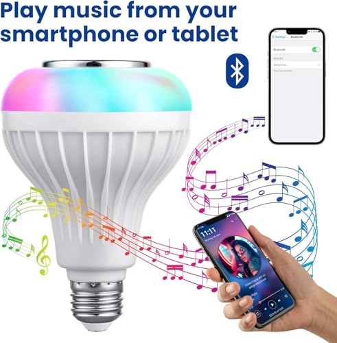 Generic - لمبة بلوتوث ذكية 2×1 بإضاءة LED متعددة الألوان مع سماعة مدمجة 8 أوم، تحكم كامل بالريموت، اتصال Bluetooth للموبايل والكمبيوتر، صوت واضح وإضاءة مزاجية عصرية للمنزل
