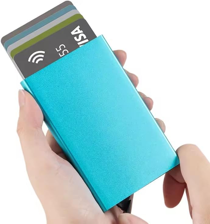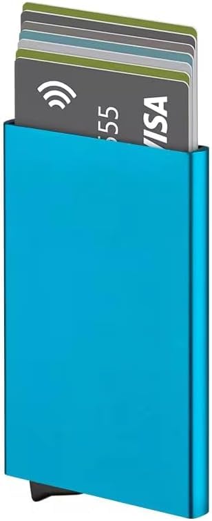 Generic - حامل بطاقات ذكي مضاد للسرقة بتصميم منبثق وتقنية حجب تحديد الهوية بموجات الراديو، رفيع من الألومنيوم، مصمم بجيب خلفي مرن، مناسب لبطاقات الائتمان والهوية للسفر (فيروزي)
