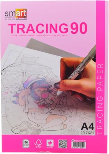 - جودة عالية: ورق شفاف بوزن 90 جرام يوفر سطحًا مثاليًا للرسم والتتبع