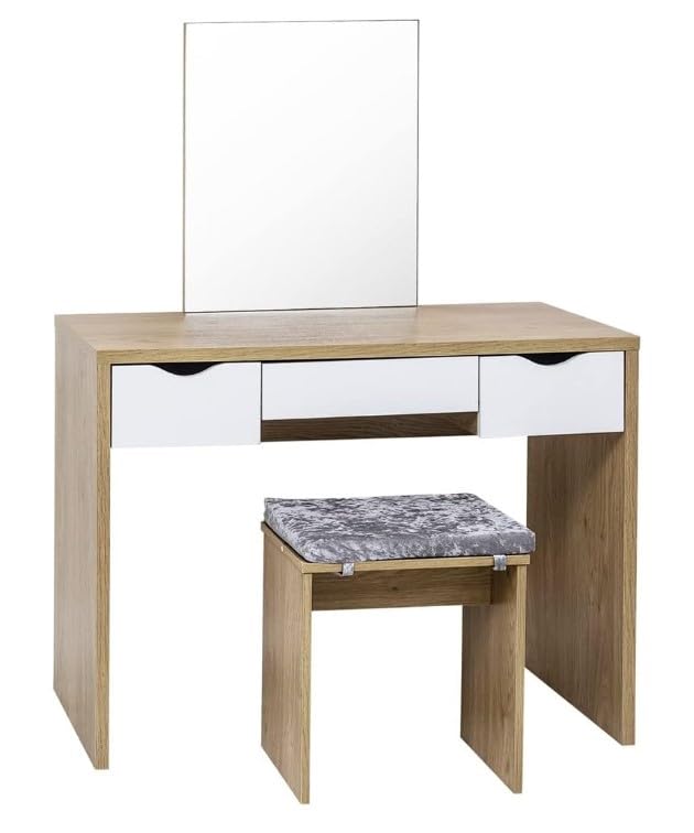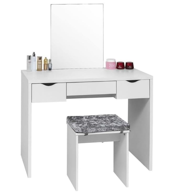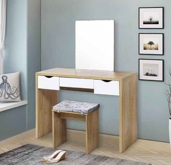 - المزايا: تتضمن مجموعة الأثاث العملية هذه طاولة مكياج ومقعد مطابقين، يمنحك المقعد المبطن شعورًا مثاليًا للجلوس.