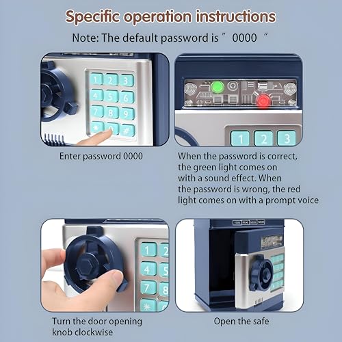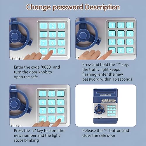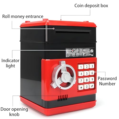 - شجع عادات الادخار لدى طفلك مع هذا البنك الصغير الرائع، والذي يتميز بقفل آمن بكلمة مرور، وموسيقى، وسعة كبيرة للعملات المعدنية والفواتير بألوان مختلفة. هذا التصميم الجذاب لا يجعل الادخار ممتعًا فحسب، بل يغرس أيضًا شعورًا بالمسؤولية المالية منذ سن مبكرة، مما يضمن أن يتعلم الأطفال أهمية إدارة أموالهم بشكل فعال.