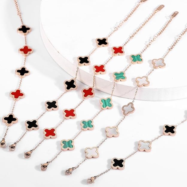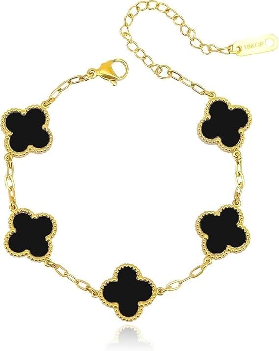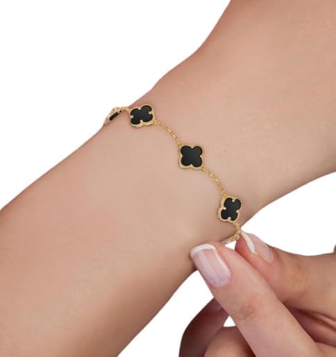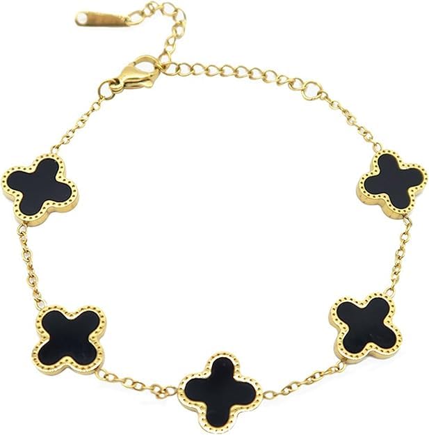 SMARTEDGE - سوار سمارت إيدج النسائي من الفولاذ المقاوم للصدأ المطلي بالذهب، سوار بتصميم زهرة البرسيم الرباعية، هدية مجوهرات للنساء
