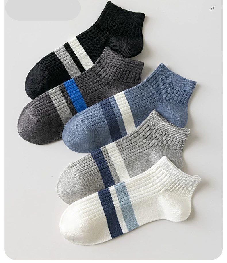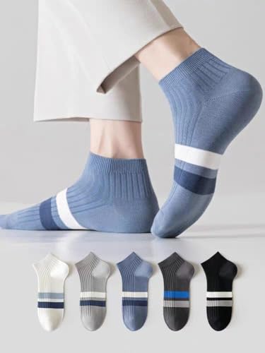 SMARTEDGE - جوارب سمارت ايدج بطول الكاحل من مزيج القطن ،رجالي وشبابي ديربي 2 خط عريض تحفة وشيك وألوان رايقة، مقاس عادي، ، بألوان رائعة، ، تصميم جديد، ٥ أزواج مع هدية واحدة، متعددة الألوان.