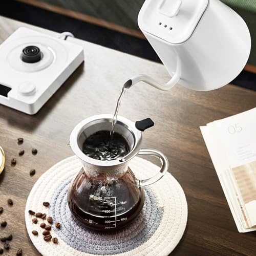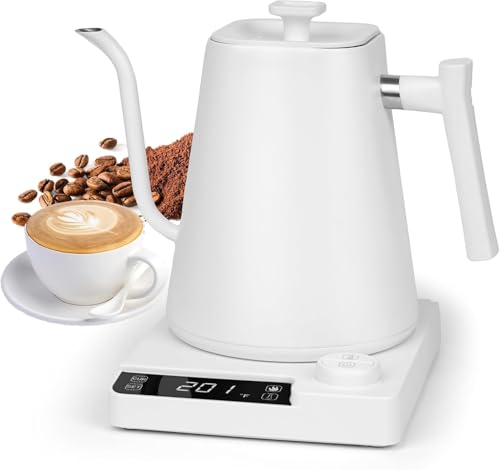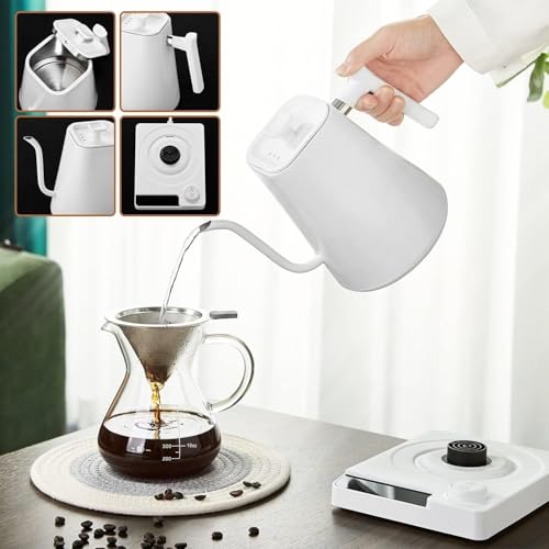 Generic - غلاية قهوة مختصة كهربائية ذكية - عنق إوزة بتحكم في درجة الحرارة - سعة 1 لتر - 1200 واط - ستانلس ستيل 304 - شاشة ديجيتال (أبيض)