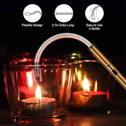 Generic - ولاعة قوس كهربائية بلازما ذكية - رقبة مرنة 360 درجة طويلة جداً - قابلة للشحن USB ومقاومة للرياح - مزودة بقفل أمان للأطفال مثالية للمطبخ، الشموع، الشواء، الأفران، والتخييم