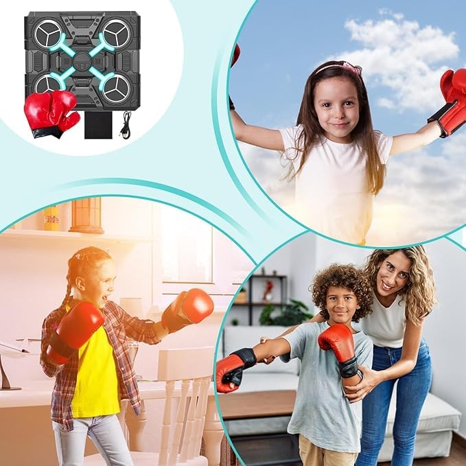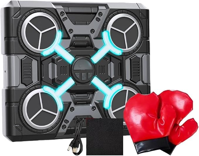 - جهاز ملاكمة موسيقي مع قفازات، جهاز ملاكمة ذكي بتقنية البلوتوث مع شحن USB للموسيقى، جهاز ملاكمة ذكي مثبت على الحائط، وسادات ملاكمة مع إضاءة ليد