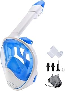 SMART FIT - قناع غوص كامل بزاوية 180 درجة مع قاعدة تثبيت للكاميرا، مجموعة غطس مضادة للتبخر وللتسريب بتصميم يسمح بالتنفس الطبيعي مع حزام رأس مرن قابل للضبط للبالغين من سمارت فيت® (لون أزرق، مقاس صغير S/ متوسط M)