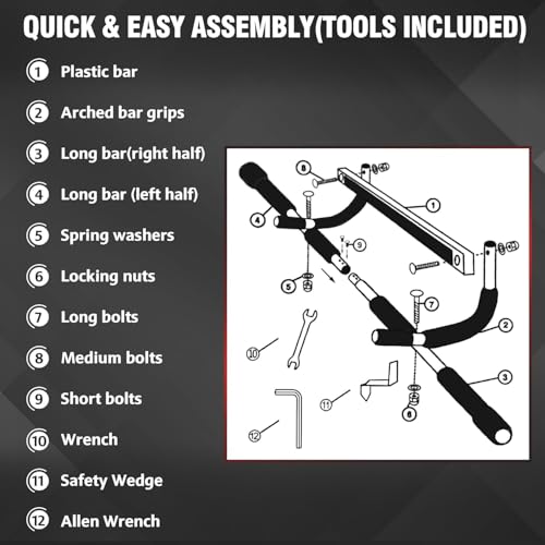 SMART FIT - قضيب سحب محمول بمقابض فوم لمدخل الباب بسعة قصوى 200 كجم، مناسب لتمارين اللياقة البدنية في المنزل وتمارين العقلة للجزء العلوي من الجسم من سمارت فيت®