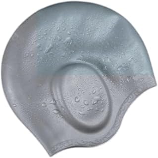 SMART FIT - بونيه سباحة سيليكون عالي الجودة سويم لايك برو من سمارت فيت ®، تصميم مريح مقاوم للماء مع حماية للأذن ثلاثية الأبعاد، بونيه سباحة مع غطاء للأذن والشعر وجيوب مريحة للبالغين (رمادي)