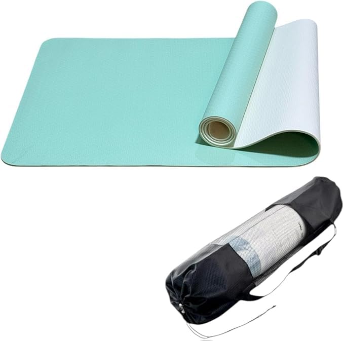 SMART FIT - سجادة لتمارين اليوجا بسماكة 6 ملم مصممة بسطح غير قابل للانزلاق للتمارين عالية الكثافة وتمارين البيلاتس ومختلف التمارين المنزلية مع شنطة حمل من سمارت فيت®، 61.83 سم × 61 سم × 1.83 سم، أخضر فاتح ورمادي