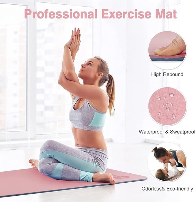 SMART FIT - سجادة سميكة لتمارين اليوجا مزدوجة الجوانب وغير قابلة للانزلاق من المطاط الحراري المرن صديقة للبيئة لتمارين اللياقة والبيلاتس للجنسين مع شنطة تخزين مرفقة من سمارت فيت® 61 سم × 6.6 سم أزرق فاتح / بني