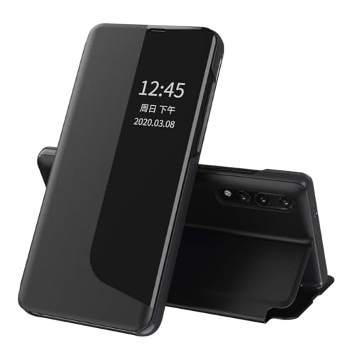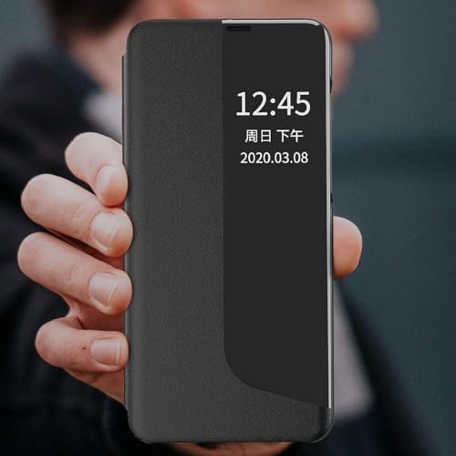 Generic - جراب ذكي قابل للطي لموبايل هونر X5 بلس - نافذة شفافة تعمل باللمس | خاصية التنبيه/السكون التلقائي | وظيفة الوقوف | حماية كاملة (أسود)