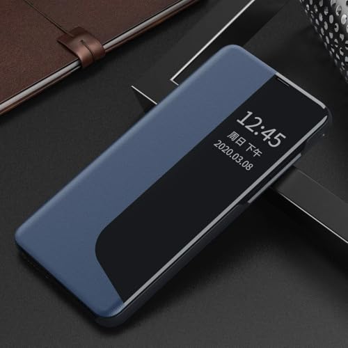 Generic - جراب قلاب شفاف ذكي يعمل باللمس بخاصية التشغيل/الإيقاف التلقائي للشاشة ووظيفة المسند مع تغطية 360 درجة لموبايل هواوي X8a (لون أزرق)