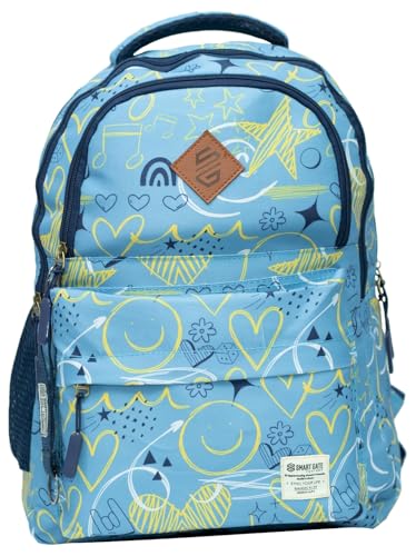 Smart Gate - شنطة ظهر مدرسية بتصميم قلوب ونجوم مقاس 15.6 من سمارت جيت SG-9136، ازرق سماوي