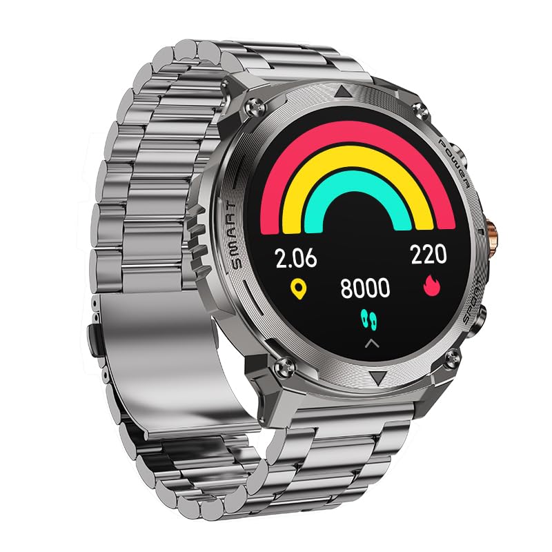 Smart Gate - ساعة ذكية جيت SGW-RGSL بشاشة اموليد 1.43 بوصة و128 ميجابايت وبتصنيف IP68 لمقاومة الماء والغبار وتدعم iOS 8.0 + اندرويد 4.4 ببطارية 400 مللي أمبير في الساعة، قطعة واحدة، فضي