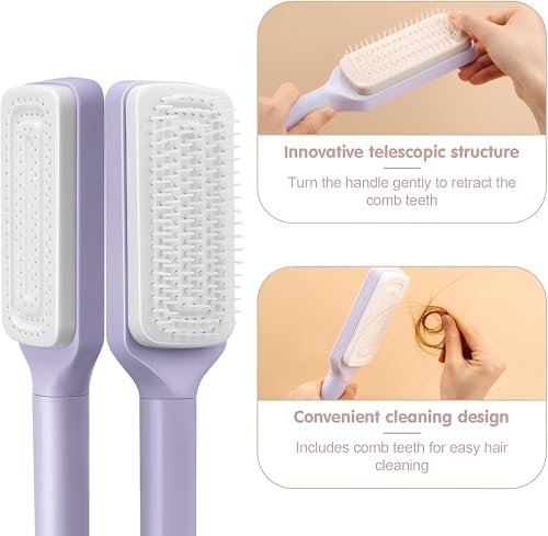 - تتميز فرشاة الشعر المبتكرة هذه بنظام تنظيف بزر واحد يفك تشابك الشعر بسهولة، ويحافظ على جماله الطبيعي ويوفر الوقت أثناء التصفيف. يضمن تصميمه الفريد إزالة الشعر المتشابك بدون مجهود بأقل جهد.