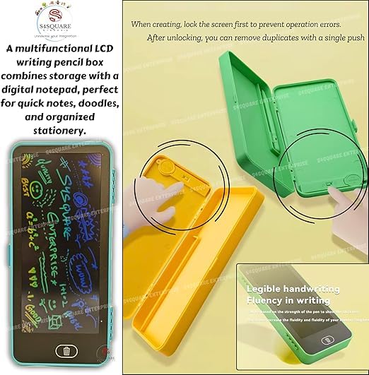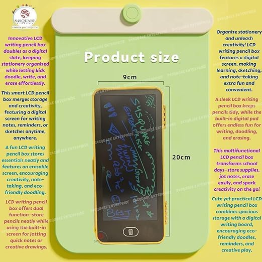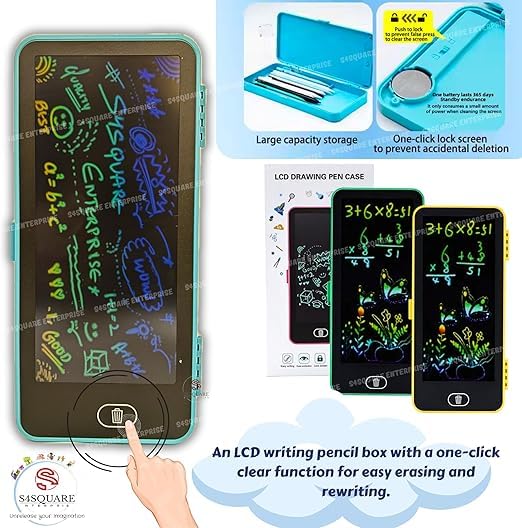 - تصميم ذكي 2 في 1: الترقية المثالية للمدرسة. تجمع بين مقلمة متينة ذات غلاف صلب مع تابلت كتابة ال سي دي مدمج. تسمح للأطفال بتدوين الملاحظات السريعة أو حل مشاكل الرياضيات أو الرسم أثناء فترات الراحة دون إهدار الورق.