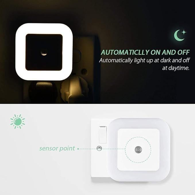 - مستشعر إضاءة سمارت مدمج، يضيء مصباح ليد الليلية أتوماتيكيًا فقط عندما تكون الغرفة مظلمة بدرجة كافية. عندما تكون الغرفة مضيئة، لن تعمل لمبة ليد الليلية.