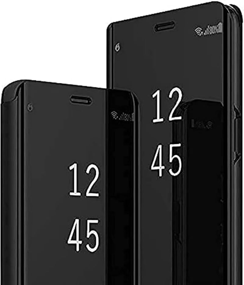 Generic - حافظة حماية ذكية عاكسة قابلة للطي لموبايل اوبو A52 وA72 وA92، رؤية واضحة مع وظيفة اللمس، خاصية التنبيه/النوم التلقائي، ظهر من جلد البولي يوريثين، حماية كاملة رفيعة - اسود