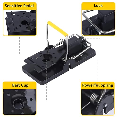 • سهلة التركيب والتنظيف: تركيب المصيدة سهل - ببساطة أضف الطعم وضعه عليه. بعد الاستخدام، يمكن تنظيف المصيدة بسهولة بالماء والصابون، مما يجعلها قابلة لإعادة الاستخدام وتدوم طويلًا. ببساطة ارفع المصيدة للتخلص من القوارض دون لمس المصيدة أو محتوياتها.