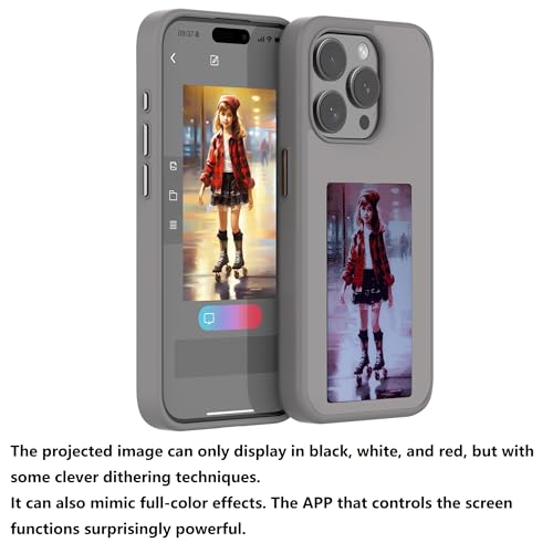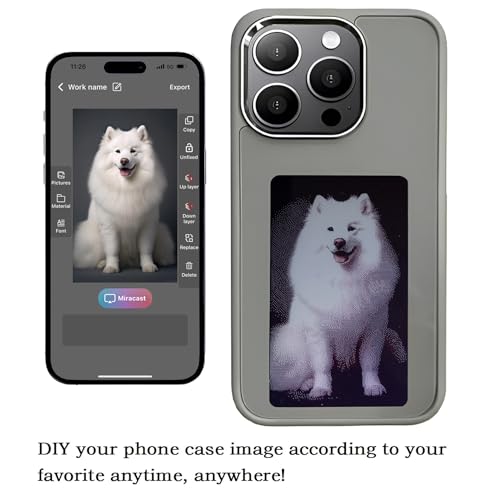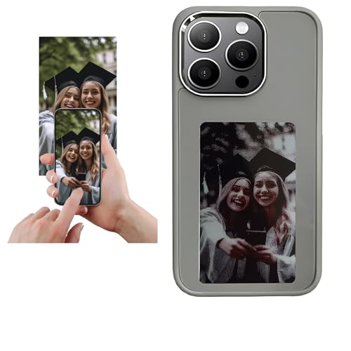 YATUO - جراب موبايل ذكي لعرض الصور الخلفية قابلة للتخصيص مع حبر الكتروني لعرض الصور على الفور على شاشة الحبر، غطاء خلفي لإضفاء الطابع الشخصي على هاتفك في أي وقت وفي أي مكان (رمادي، لموبايل ايفون 15 برو ماكس)