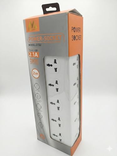 Generic - وصلة طاقة ذكية 2500 واط موديل 315U - 10 مقابس، 3 USB، 1 بي دي، 2 متر