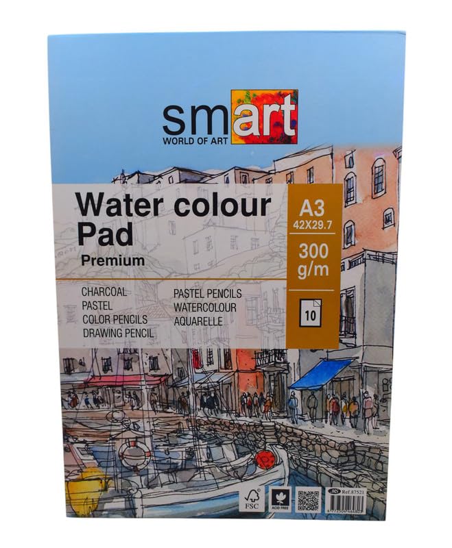 Generic - دفتر رسم الألوان المائية بمقاس A3 من سمارت، 10 ورقات، متعدد الألوان