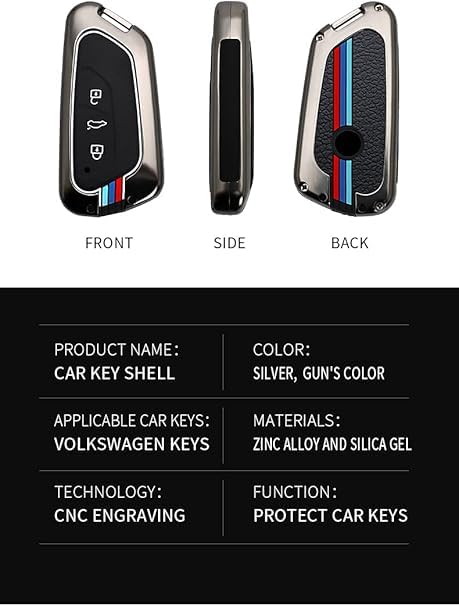 Generic - غطاء مفتاح ذكي للتحكم عن بعد – متوافق مع فولكس فاجن جولف 8 MK8 وGTI – حافظة مفاتيح سوداء 3 أزرار مع سلسلة مفاتيح