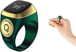 - التصميم: خاتم ذكي أنيق يتميز بلمسة نهائية فاخرة باللونين الأخضر والذهبي مع واجهة عرض رقمية أنيقة تعمل باللمس