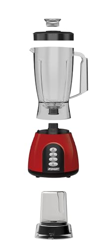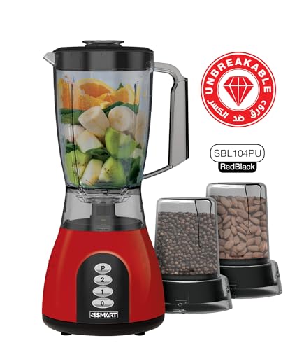 Smart - خلاط بيانو SBL104PU 500 واط غير قابل للكسر مع مطحنتين من سمارت، سعة 1.5 لتر، أحمر/أسود