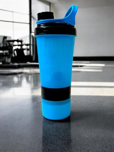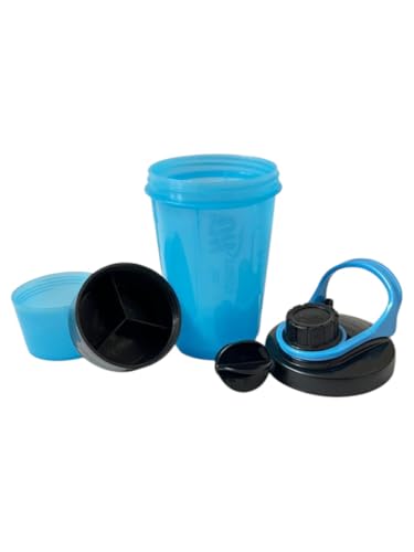 Generic - زجاجة شيكر ذكية مع منظم أقراص الدواء وتخزين مسحوق البروتين للتمارين الرياضية، مكونة من 3 حاويات بآلية لف وقفل مع غطاء محكم ضد التسرب (أزرق سيان، 650 ملليلتر)