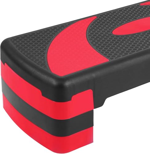 Smart Sport - منصة تمارين رياضية خفيفة الوزن محمولة بارتفاع قابل للتعديل للتمارين الرياضية مزودة برافعات، أسود/ أحمر