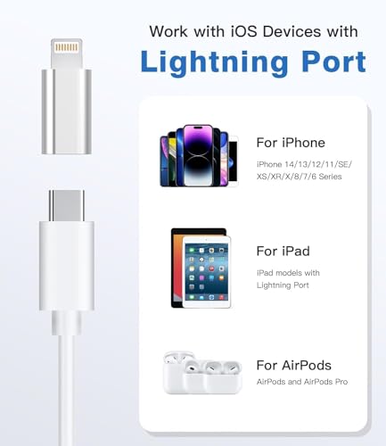 - ✅【توافق واسع】يشحن أجهزة IOS الخاصة بك عبرالكابل من النوع سي، مما يوفر عناء حمل كابل لايتنينج إضافي. محول من النوع C إلى لايتنينج متوافق مع ايفون 14/13/12/11/SE/X/XR/XS/8/7/6/6s/برو ماكس بلس ميني، ايبود نانو 7، ايبود تاتش 5، اي باد 9/8/6/5، اي باد برو، اي باد اير 1/2/1/2/3، 3، اي باد ميني 5 /4/3/2، ايربودز 1/2/3 وايربودز برو، وما إلى ذلك