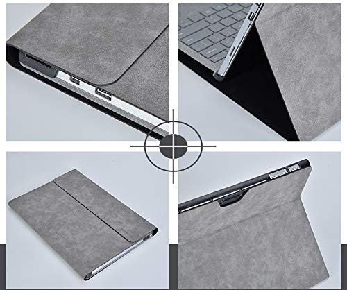 Smart Stuff - مايكرو سوفت سرفيس برو 7 - 6 - 5 - 4 حافظة من الجلد الصناعي مع داخلية صلبة مضادة للصدمات - 12.3 بوصة - رمادي