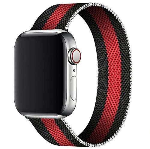 Smart Stuff - أوستيك معدن لوب خفيف ومريح لساعات ابل 6 مقاس 40mm ضد الصدأ من سمارت ستاف - أسود مع أحمر، للجنسين