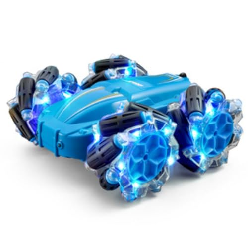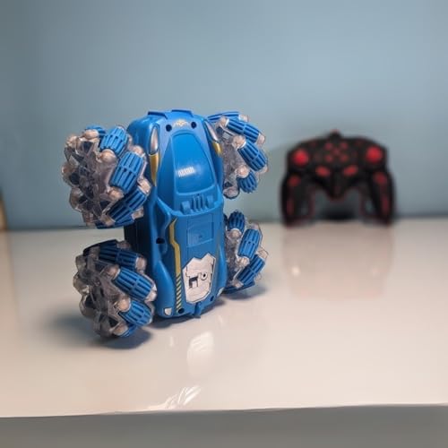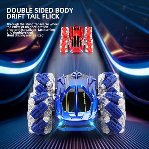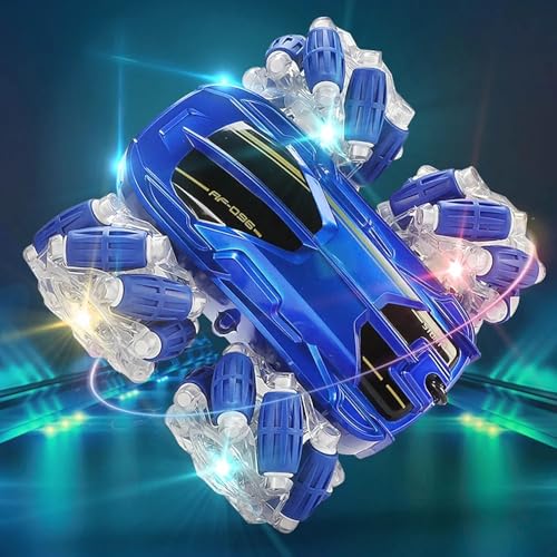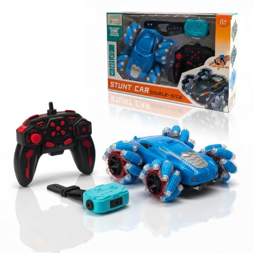 Generic - السيارة البهلوانية الذكية بجهازي تحكم، سيارة دفع رباعي بوجهين مع ساعة تحكم بالإيماءات، تقوم بحركات الدريفت الجانبي والدوران 360 درجة مع أضواء (ازرق)